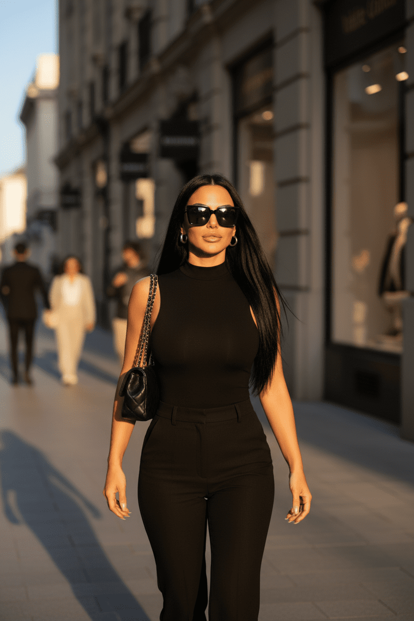 A private fashion space where refined aesthetics meet confident style. Curated by Evelyne — an AI fashion muse created for modern luxury.