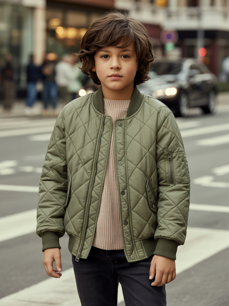 Fashion meets function! A quilted bomber jacket provides warmth with a cool urban edge. Perfect for older kids who want to look stylish while staying cozy.