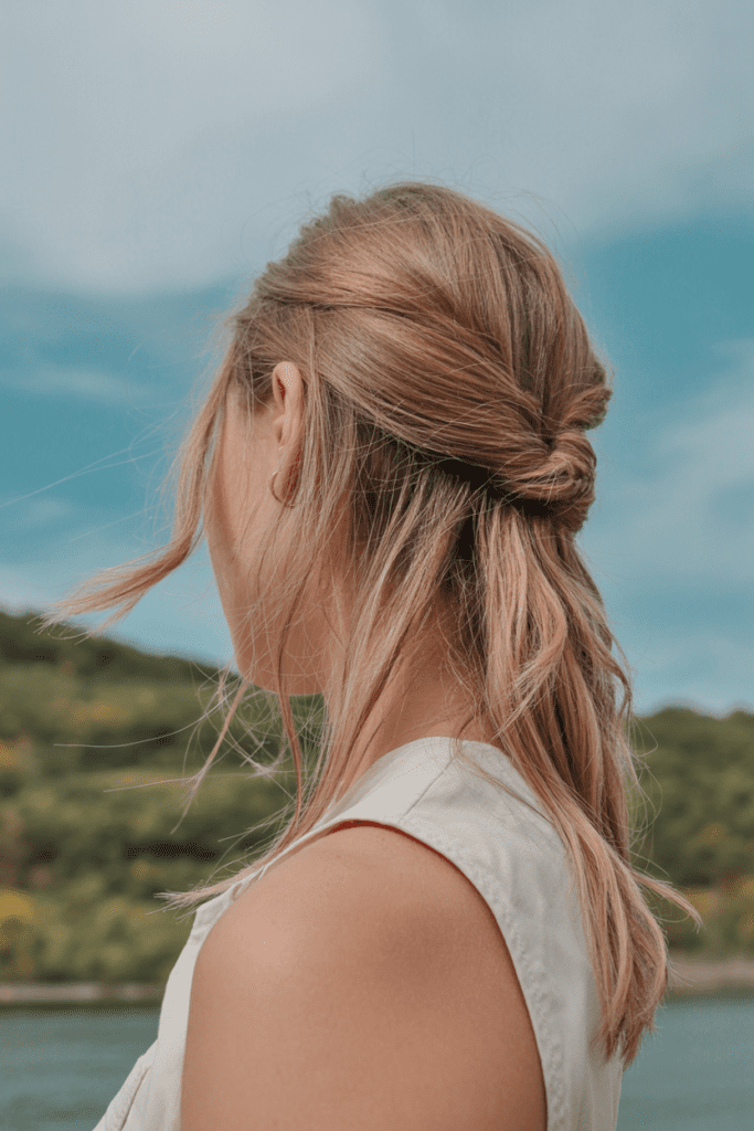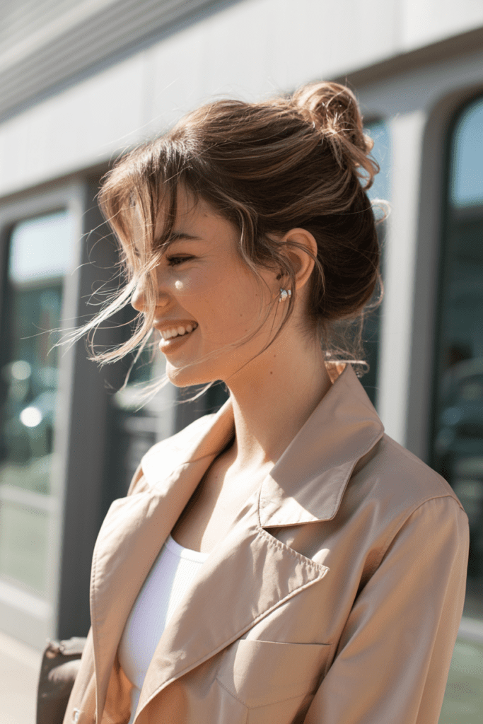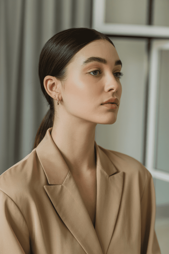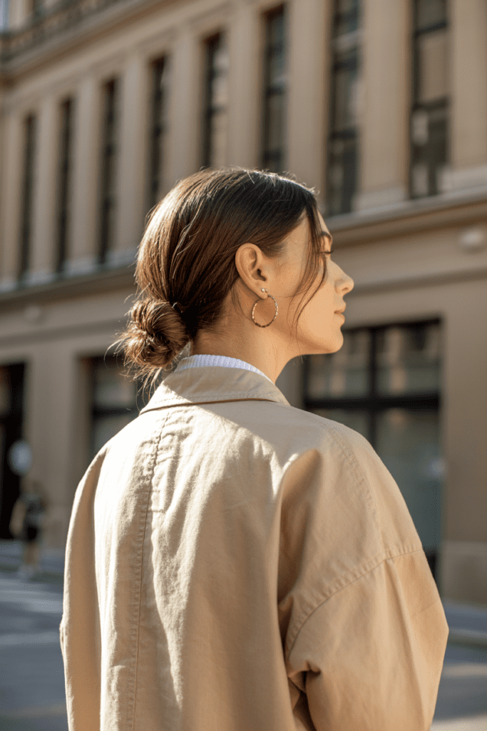 Quick hairstyles work best with a clean, effortless style. Think neutral outfits, relaxed silhouettes, and minimal accessories.