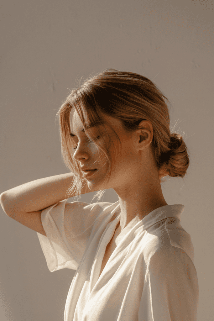 A softer alternative to the classic bun, this style sits at the nape of your neck and feels calm and understated.