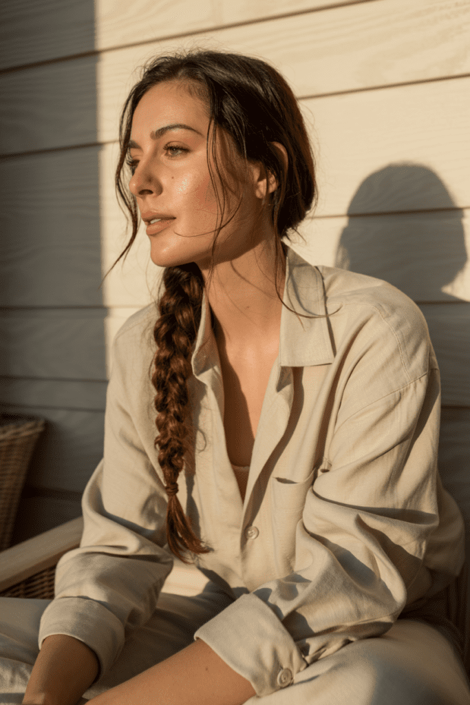 The side braid is simple yet charming. It adds a touch of softness and works especially well when your hair isn’t freshly styled.
