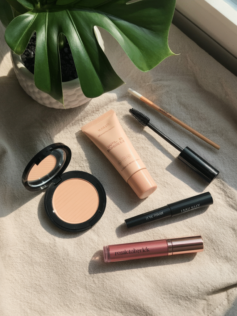 Keep essentials handy — tinted moisturizer, blush stick, mascara, and lip balm can create a full look in under five minutes.