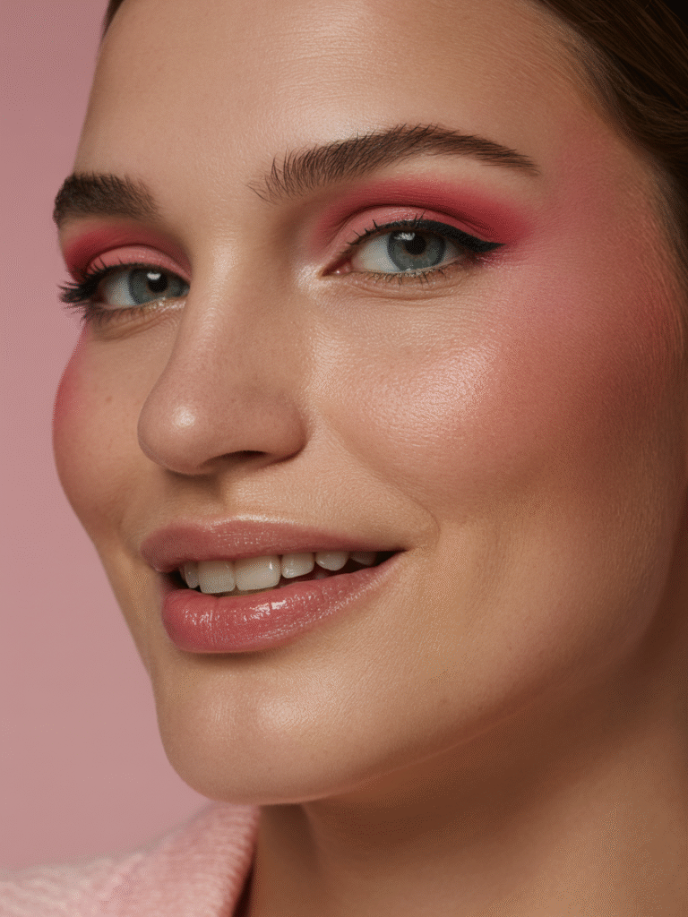 Use one color palette — pink, coral, or beige — on eyes, lips, and cheeks. This gives a coordinated, effortless finish.