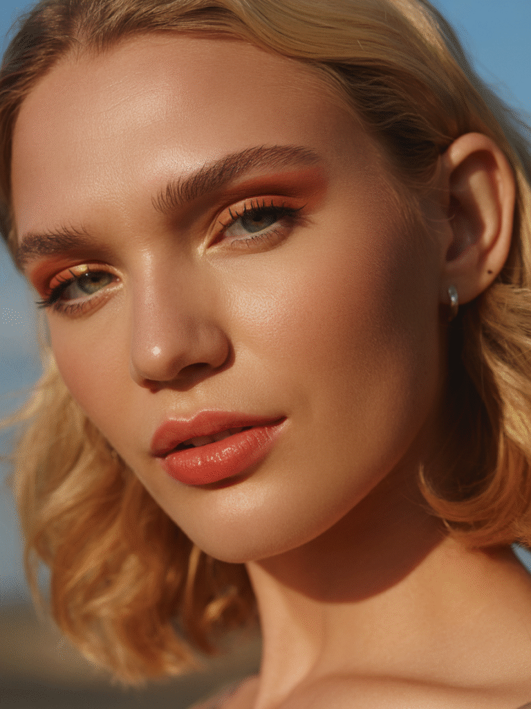 Peach tones complement all skin types. Use peach blush, lip tint, and a coral shimmer on the eyes for a sun-kissed effect.