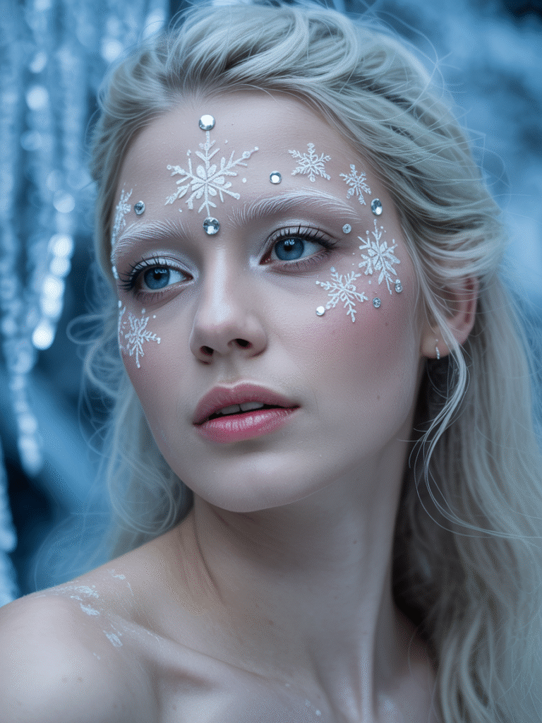 Add pearlescent white shimmer with silver eyeliner or gems for a magical snow-queen look. Great for Christmas Eve or themed parties.