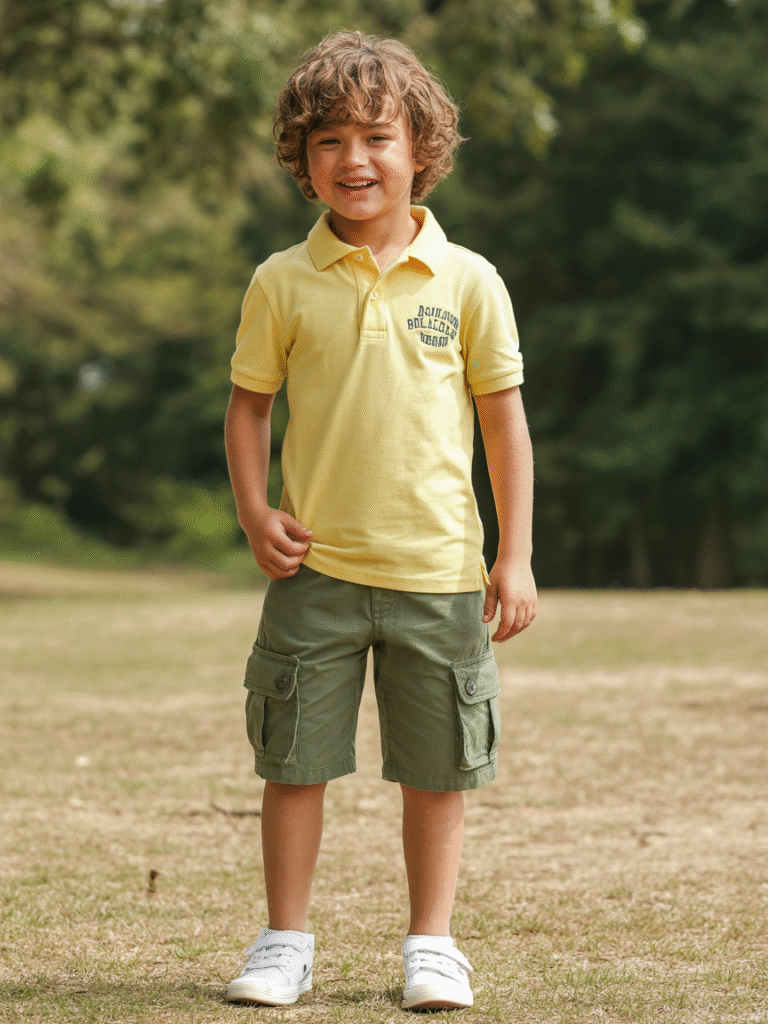 An ideal outfit for boys — the classic polo gives structure while cargo shorts add practicality with pockets for tiny treasures.