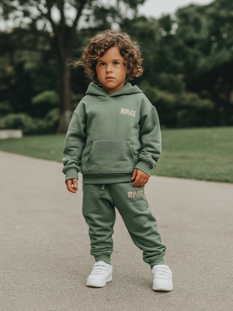 For laid-back, sporty vibes. A matching jogger and hoodie set keeps kids cozy on school mornings or playdates.