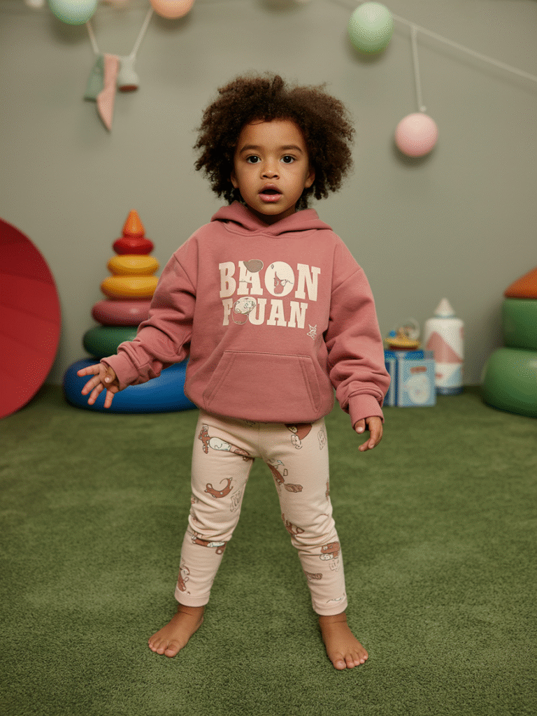 Simple, sporty, and full of personality. Choose a hoodie with bold prints and pair with comfy leggings — ideal for playtime or errands.