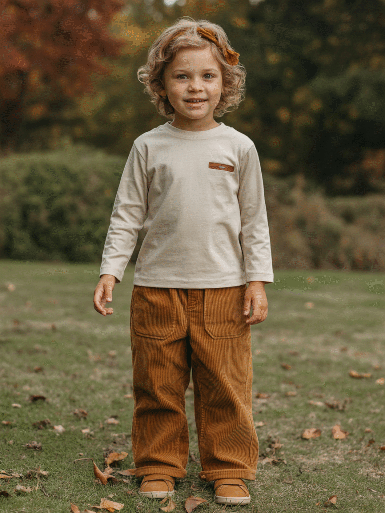 Perfect for transitional seasons. Soft corduroy pants paired with a long-sleeve top create a smart-casual outfit that’s both cozy and stylish.