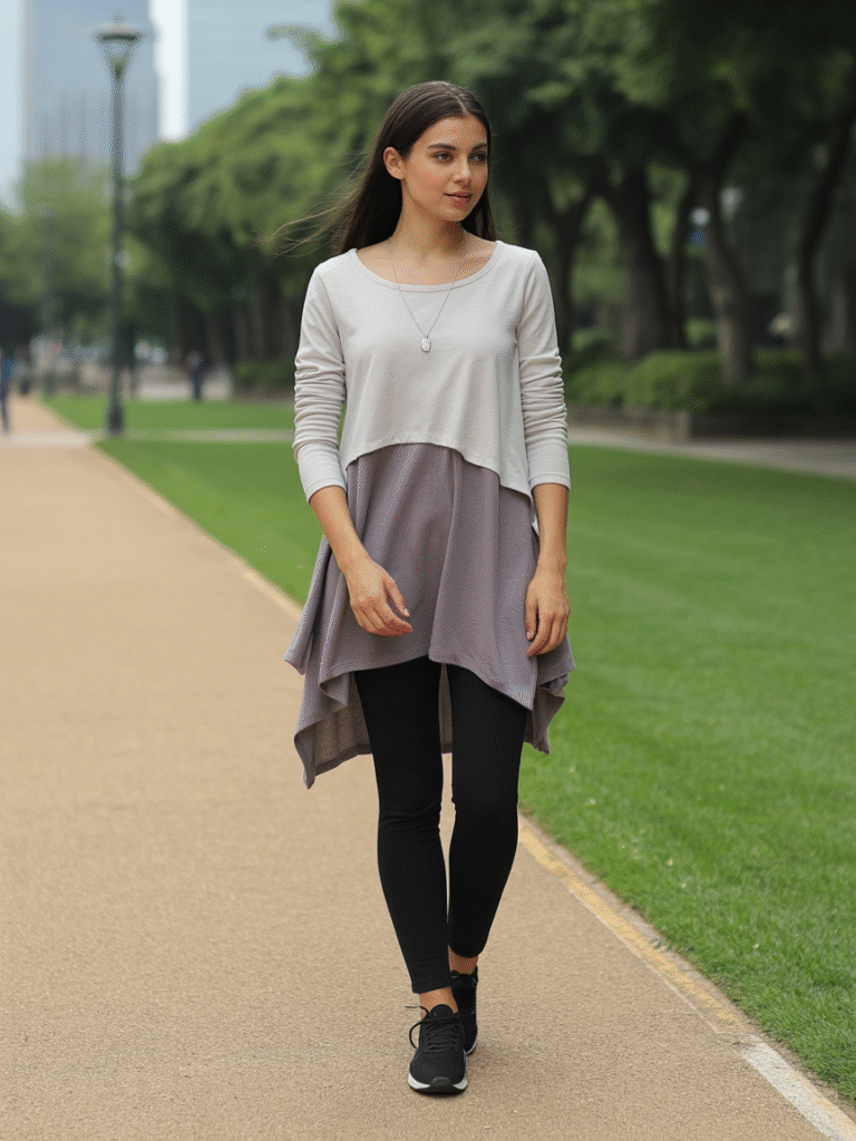 A great choice for school or casual outings. Jeggings give flexibility while tunics provide coverage and flair.