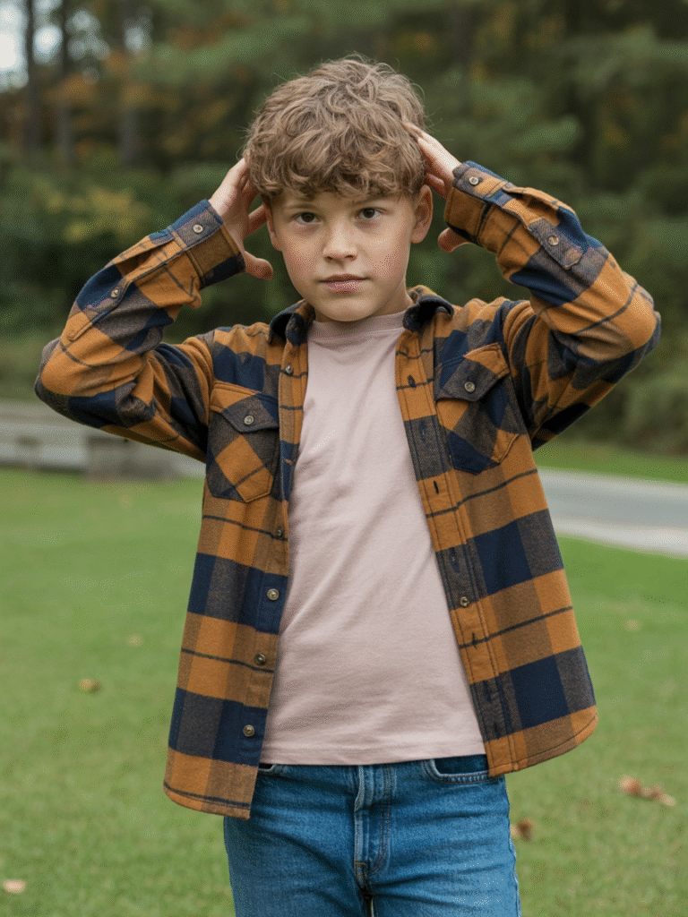 Flannel never goes out of style. Layer it open over a tee for a laid-back, rustic look — ideal for family outings or weekend fun.