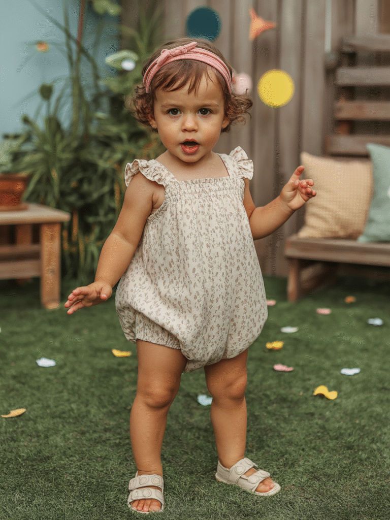 Parents love rompers because they’re one-and-done! Choose cotton or denim for durability and playful designs for personality.