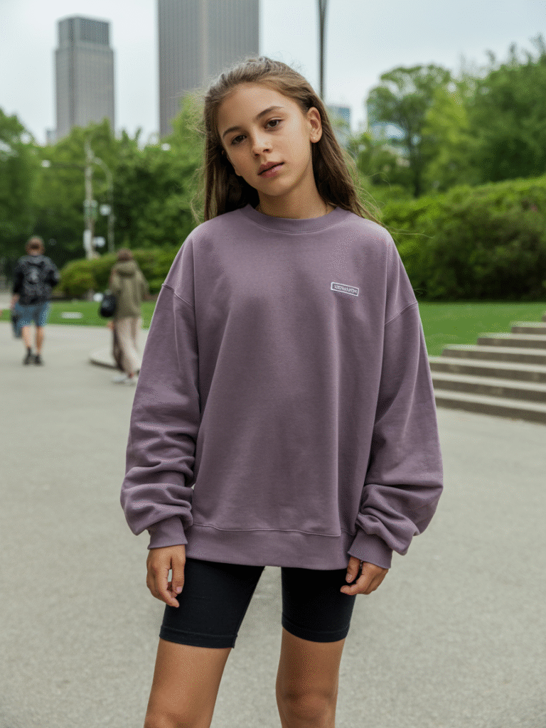 Comfy meets trendy! Oversized sweatshirts paired with biker shorts are a current favorite for older kids and tweens.