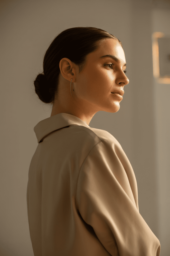 Think neutral tones, soft fabrics, and simple silhouettes. A clean outfit combined with an easy hairstyle instantly feels intentional. A sleek ponytail with a blazer, a messy bun with a knit sweater—these combinations work because they are balanced.