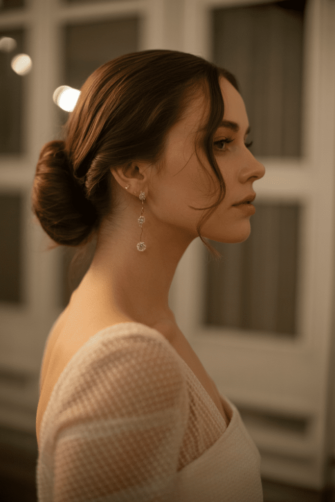 Accessories are subtle. A silk ribbon, a classic hairpin, or a minimal clip enhances the look without drawing attention away from it. The focus is always on restraint.