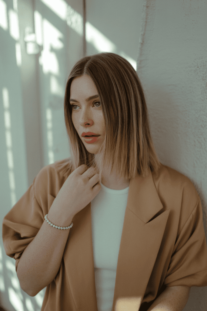 Imagine soft daylight filtering through tall windows, catching the smooth surface of perfectly brushed hair. There is no excess, no unnecessary volume, no overly styled finish. Instead, every strand falls into place with quiet precision. It’s a look that feels lived-in yet polished—effortless yet intentional.