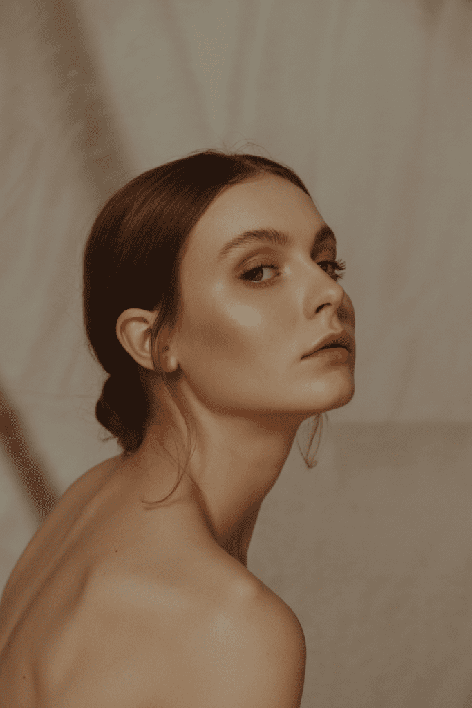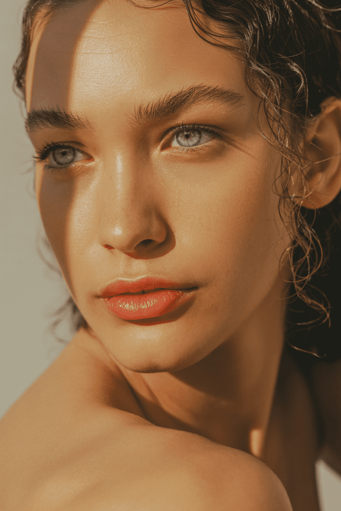 Glowing skin with a soft highlight.